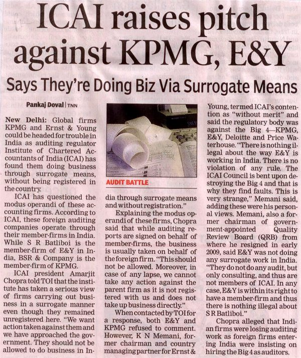 ICAI raises pitch against KPMG, E&Y