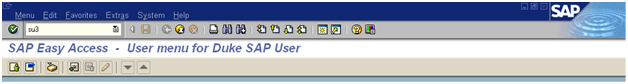 Enter SU3 in the Command field of the SAP R/3 System screen and click on the Enter button (Enter).